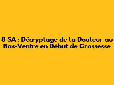 Salut les filles ! Vous êtes enceintes, et vous ressentez des douleurs au bas-ventre à 8 semaines d'aménorrhée (SA) ? Pas de panique, vous n'êtes pas seules ! C'est super fréquent. On va décortiquer ensemble ce qui se passe et vous donner des infos pour gérer ça au mieux. Accrochez-vous, on va tout vous expliquer, des causes possibles aux situations où il faut absolument consulter. Alors, prêtes à en savoir plus sur les douleurs bas ventre grossesse 8sa ? C'est parti !