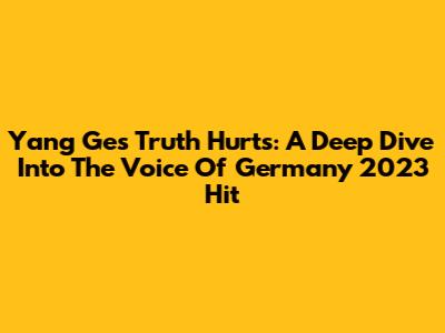 Yang Ge's 'Truth Hurts': A Deep Dive Into The Voice Of Germany 2023 Hit