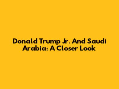 Donald Trump Jr. And Saudi Arabia: A Closer Look