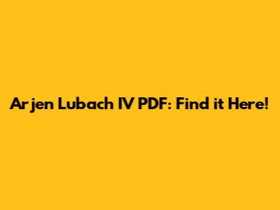 - "Arjen Lubach [Specific Topic] IV PDF"