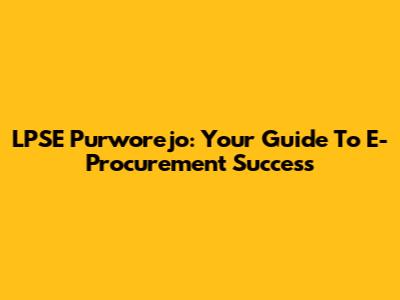 LPSE Purworejo: Your Guide To E-Procurement Success