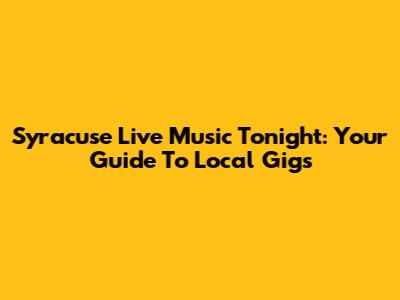 Syracuse Live Music Tonight: Your Guide To Local Gigs