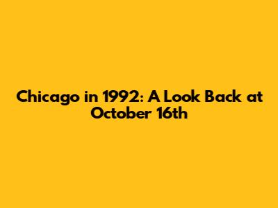 Hey everyone! Ever wondered what was happening in Chicago, Illinois on October 16, 1992? Well, buckle up, because we're diving headfirst into a blast from the past! We'll explore the city's happenings, from the local news and sports to the overall vibe of the Windy City on that specific day. It's like a time capsule, bringing back memories and insights into a single day in Chicago's history. Let's get this show on the road! The day's events provide a fascinating snapshot of the city during that era. Understanding the context of the early 90s, including economic conditions, social movements, and cultural trends, is essential for a comprehensive analysis of the day's occurrences. The city, known for its rich history, vibrant culture, and diverse population, offers a wealth of information for anyone interested in exploring the events of that day. This specific date provides a focused lens through which to examine a city in transition. We can look at this day through multiple lenses, including local news reports, sports games, and cultural events. Looking at the happenings of October 16, 1992, gives us a glimpse into a very specific moment in the life of Chicago. By exploring the events of this day, we can see what was on the minds of Chicagoans, what challenges they faced, and what they celebrated. It's a chance to understand the historical significance of the city. We will explore the headlines, from major crime incidents to local community events, to get a sense of the issues that were making headlines. We can also explore sports events, local politics, and daily life of the city. Through this detailed examination, we aim to provide a picture of what life was like for the residents of Chicago on October 16, 1992.