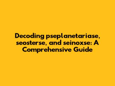 Decoding Pseplanetariase, Seosterse, And Seinoxse: A Comprehensive Guide