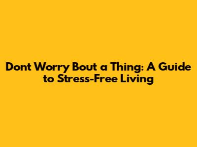 Hey guys, ever feel like you're constantly bombarded with things to worry about? From work deadlines to personal relationships, life can throw some serious curveballs our way. It's easy to get caught up in a whirlwind of anxiety, but guess what? It doesn't have to be that way! Today, we're diving deep into how to live a life where you can genuinely say, "Don't worry 'bout a thing." We'll explore practical strategies, mindset shifts, and simple habits that can help you ditch the stress and embrace a more peaceful existence. So, grab a cup of your favorite beverage, get comfy, and let's start this journey to a calmer, happier you. It's time to take back control and not let those worries dictate your day. We're talking about serious stress-busting techniques here, folks, the kind that actually work and make a real difference. Forget those fleeting fixes; we're aiming for lasting peace.