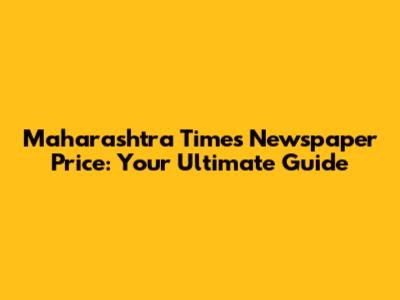 Maharashtra Times Newspaper Price: Your Ultimate Guide