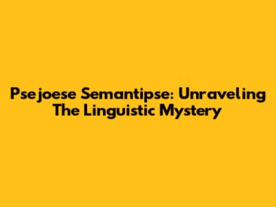 Psejoese Semantipse: Unraveling The Linguistic Mystery
