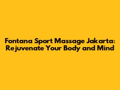 Unveiling Fontana Sport Massage Jakarta: A Haven for Wellness