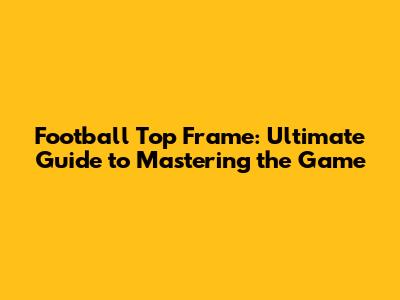 Football Top Frame: Ultimate Guide To Mastering The Game