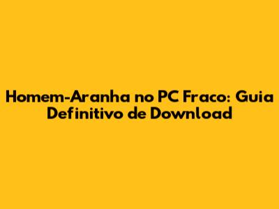 Onde Baixar Homem-Aranha para PC Fraco?