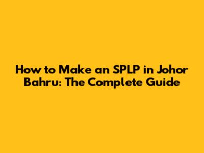 How To Make An SPLP In Johor Bahru: The Complete Guide
