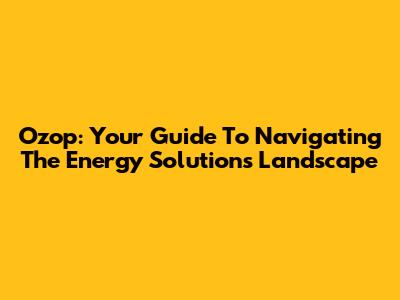 Ozop: Your Guide To Navigating The Energy Solutions Landscape