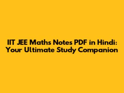 Finding the Best IIT JEE Maths Notes PDF in Hindi
