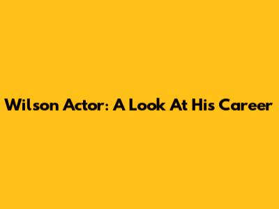 Wilson Actor: A Look At His Career