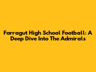Farragut High School Football: A Deep Dive Into The Admirals