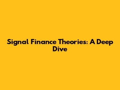 Signal Finance Theories: A Deep Dive