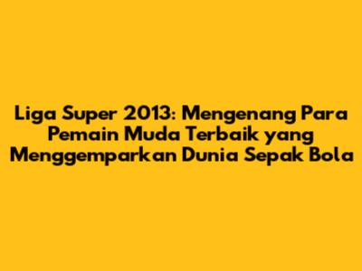 Liga Super 2013 meninggalkan warisan yang sangat berharga bagi perkembangan sepak bola Indonesia. Kehadiran para pemain muda terbaik di musim tersebut telah memberikan inspirasi bagi generasi muda lainnya untuk terus berjuang meraih mimpi. Mereka membuktikan bahwa dengan kerja keras dan dedikasi, segala sesuatu bisa diraih. Mereka menjadi contoh nyata bahwa sepak bola Indonesia memiliki potensi yang sangat besar untuk berkembang. Warisan ini menjadi semangat bagi kita semua untuk terus mendukung perkembangan sepak bola Indonesia.
