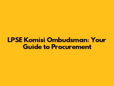 Alright, guys, let's dive into the world of LPSE Komisi Ombudsman. If you're scratching your head wondering what that is, don't worry! We're here to break it down in a way that's easy to understand. This isn't just some dry government jargon; it's a crucial part of ensuring transparency and efficiency in public procurement. So, buckle up, and let's get started!