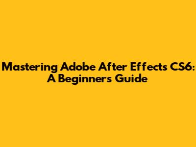 Mastering Adobe After Effects CS6: A Beginner's Guide