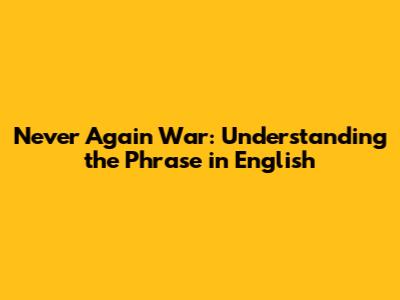 How to Use "Never Again War" in English