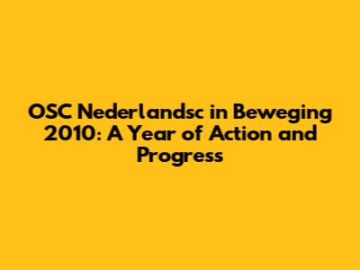 Unpacking the Key Initiatives of OSC Nederlandsc in 2010