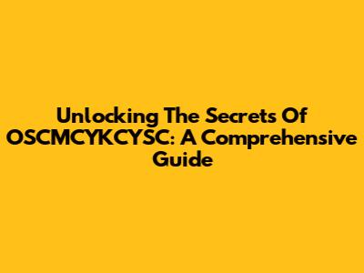 Unlocking The Secrets Of OSCMCYKCYSC: A Comprehensive Guide