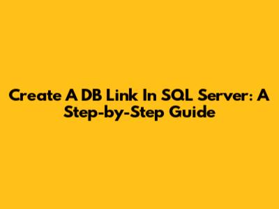 Create A DB Link In SQL Server: A Step-by-Step Guide