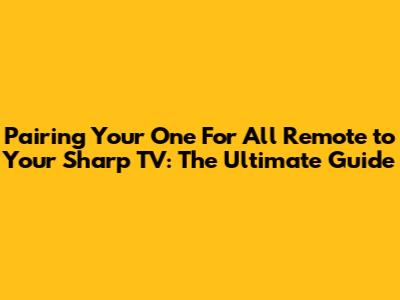 Pair One For All Remote To Sharp TV: Easy Guide