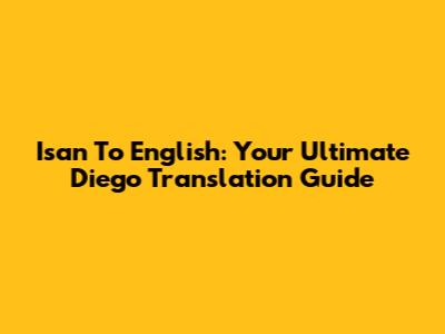 Isan To English: Your Ultimate Diego Translation Guide