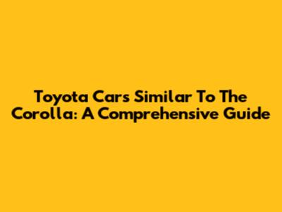 Toyota Cars Similar To The Corolla: A Comprehensive Guide