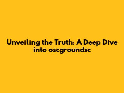 Unveiling The Truth: A Deep Dive Into Oscgroundsc