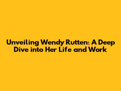 Hey guys! Ever heard the name Wendy Rutten? If not, you're in for a treat! This article is all about diving deep into the world of Wendy Rutten, exploring her life, her work, and everything in between. We'll be taking a close look at who she is, what she does, and why she's making waves. So, buckle up, grab your favorite drink, and let's get started on this exciting journey of discovery!