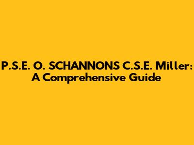 P.S.E. O. SCHANNON'S C.S.E. Miller: A Comprehensive Guide