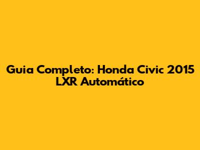 Guia Completo: Honda Civic 2015 LXR Automático