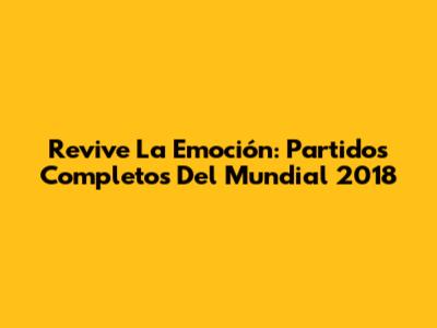 Revive La Emoción: Partidos Completos Del Mundial 2018